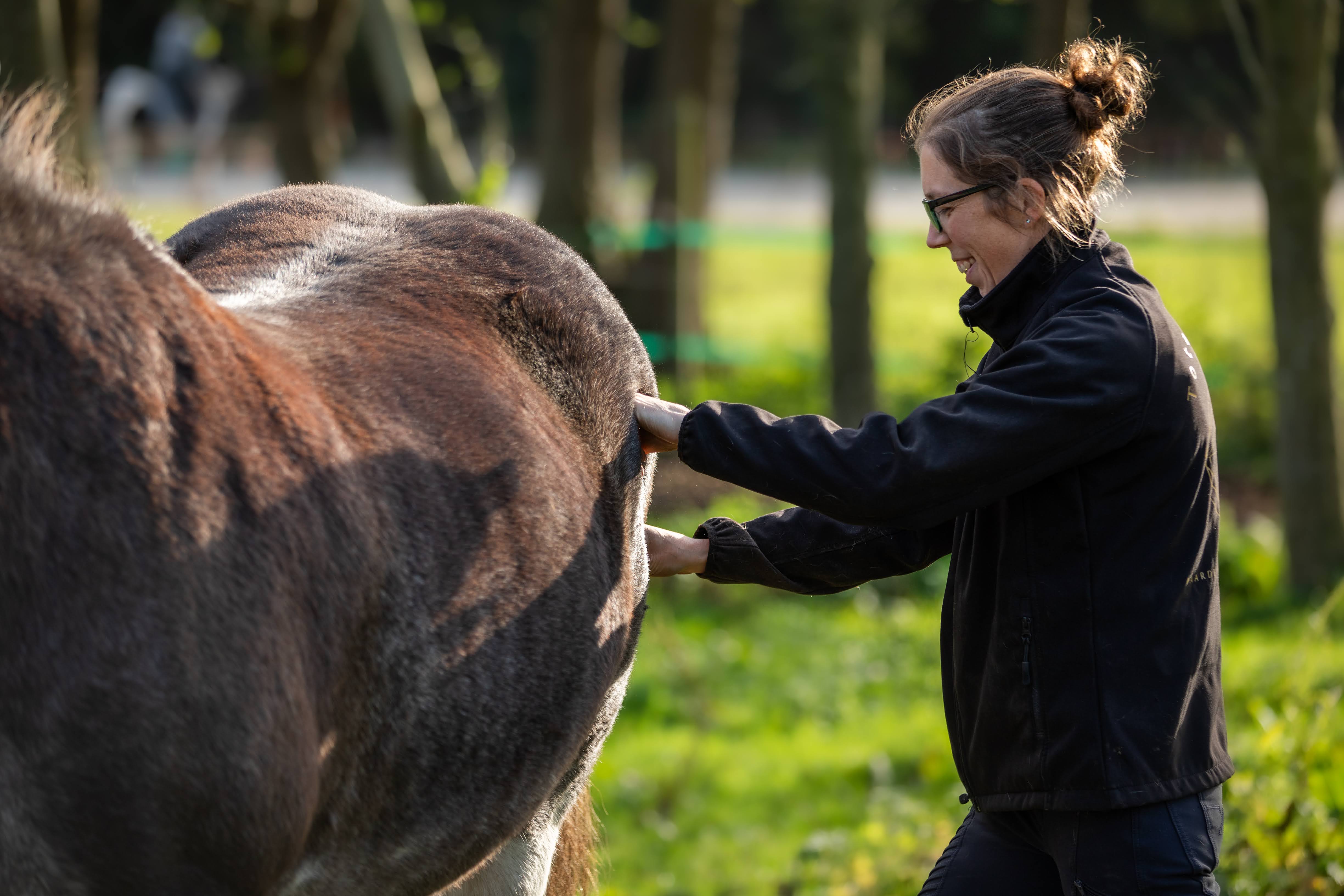Spreken we voor het eerst af? Dan beginnen we met een uitgebreid vraaggesprek zodat ik een goed beeld heb van jou en je paard. Daarna zal ik een inspectie uitvoeren om een beeld te krijgen van de botten, spieren en houding van je paard. Hier hoort ook een palpatie bij: ik ga dan het lijf van je paard voelen om nog meer inzicht te krijgen. Vervolgens doen we een bewegingsanalyse waarbij ik je paard in beweging bekijk op harde en zachte bodem. Zo ontstaat er een totaalplaatje van jouw paardje en kunnen we gericht aan de slag met massage en advies!